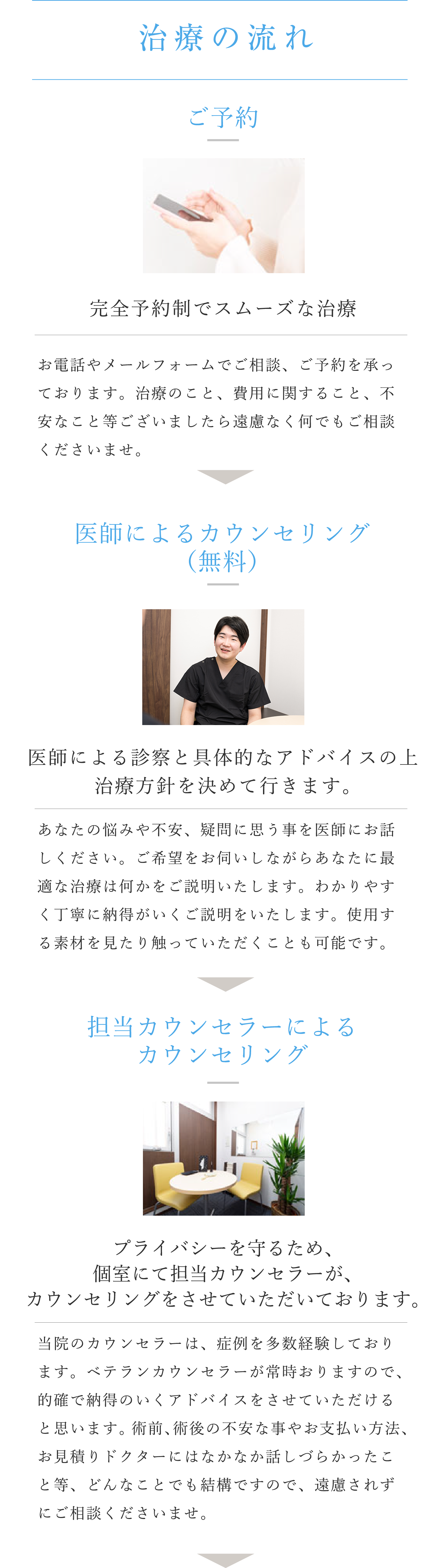 メール相談・資料請求・オンライン予約フォームなどを利用される際、メールアドレス・お名前その他の個人情報の入力が必要な場合があります。これらの個人情報は、ご相談内容に適切にお答えしたり、資料をお送りしたり、ご予約を受け付けたりするために必要なものです。また、当ウェブサイトをより快適にご利用いただけるものにするために、ご意見やご要望などについてのご質問をさせていただく場合もございますが、この場合は、任意でお答えいただくようになっております。 お答えいただけない場合も、ご予約等のご利用に支障はございません。